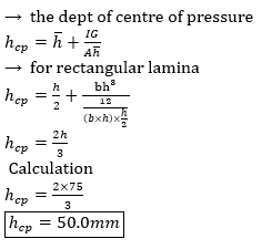 When a rectangular lamina is immersed in water at a depth of 75mm vertically, What is the depth of centre of pressure of the lamina?