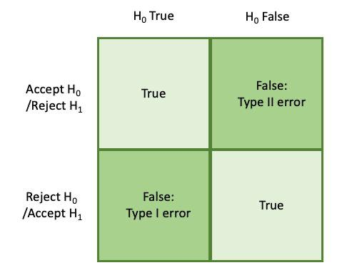 Type II error (Error of Omission): Happens when the null hypothesis is false, but the researcher fails to reject it—this is a false negative.