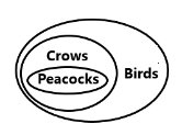 II. All birds are peacocks. (False, only peacocks are included within crows and birds, but not all birds are necessarily peacocks).
