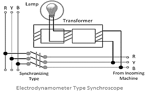 A synchroscope works on the principle of an AC motor. It has a pointer that rotates on a dial, and the direction of rotation indicates the speed of the machine: