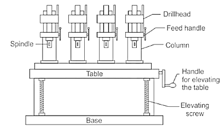 large-batch production as it consists of multiple drilling heads mounted on the same table. This setup allows different operations, such as drilling, reaming, and tapping, to be performed simultaneously on the same workpiece without changing the setup, increasing production efficiency and reducing cycle time.