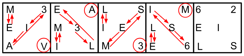 Logic: In the given figure, the elements are changing their position in a fixed pattern from one box to another. On analyzing the given figure, we can see that two alternate patterns are being followed (i.e., from box 1 to 2, from box 3 to 4 follow the same pattern, and from box 2 to 3, and from box 4 to 5 follow the same pattern.)