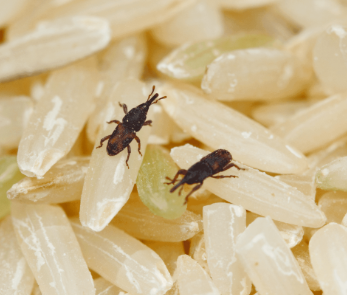 Weevils are major pests of stored grains such as wheat, rice, maize, and pulses. They infest stored food products, bore into grains, and lay eggs inside them.