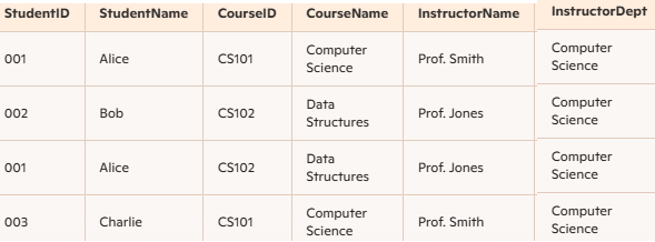 Second Normal Form (2NF): Ensures that the table is in 1NF and that all non-key attributes are fully functionally dependent on the primary key.
