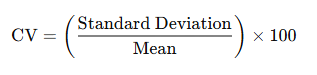 Unlike standard deviation, CV allows comparisons even when mean values vary significantly.