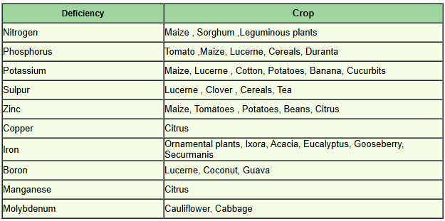 Maize is used as an indicator crop for nitrogen (N), phosphorus (P), and zinc (Zn) deficiencies, as it exhibits distinct deficiency symptoms.
