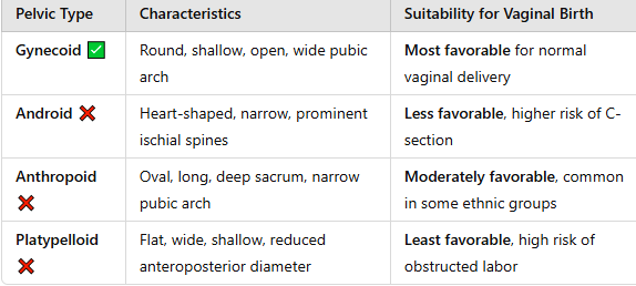 most common and ideal pelvic shape for childbirth. It is characterized by: