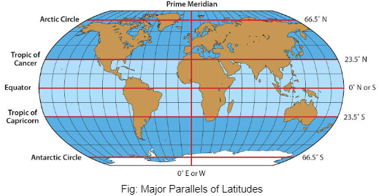· Tropic of Cancer : Located at 23.5°N latitude.
