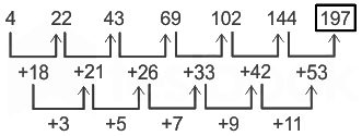 Logic: Double difference is increasing by +3,+7, + 9, +11,…