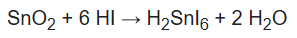 Tin oxides dissolve in acids. Halogen acids attack SnO2 to give hexahalostannates, such as [SnI6]2−. One report describes reacting a sample in refluxing HI for many hours.