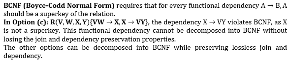 Consider a schema R(P, Q, R, S) and the following functional dependencies P→Q, Q→R, R→S, S→Q. Then decomposition of R1(P, Q), R2(Q, R) and R3(Q, S) is: