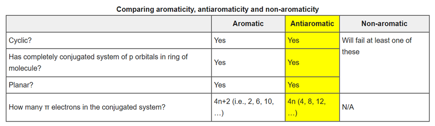 4.The molecule must have 4n π-electrons where n is any integer within the conjugated π-system.