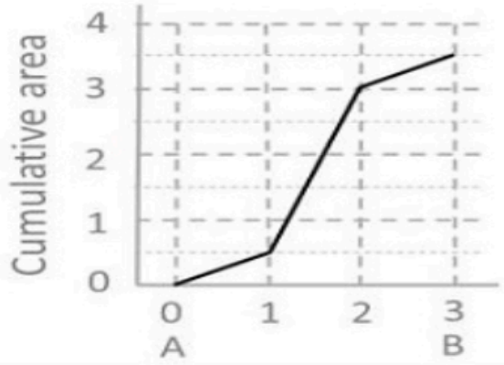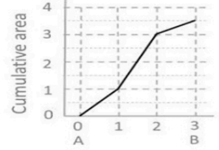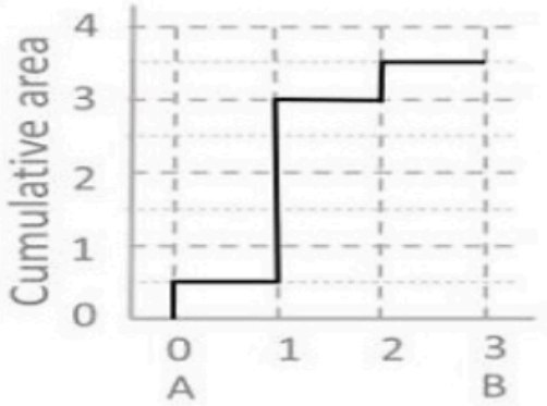 From 1 to 2 steeper rise (correct, because height is more = 2)