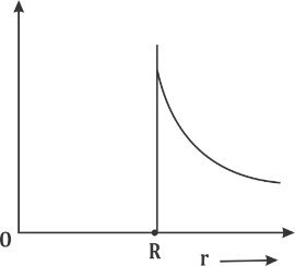Outside the wire (r > R), the magnetic field decreases inversely with the distance.