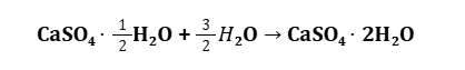 When mixed with water, it undergoes a hydration process to form calcium sulfate dihydrate (gypsum) (CaSO4⋅2H2O).