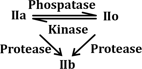 Phosphatase - Removes phosphate groups — converts IIo → IIa
