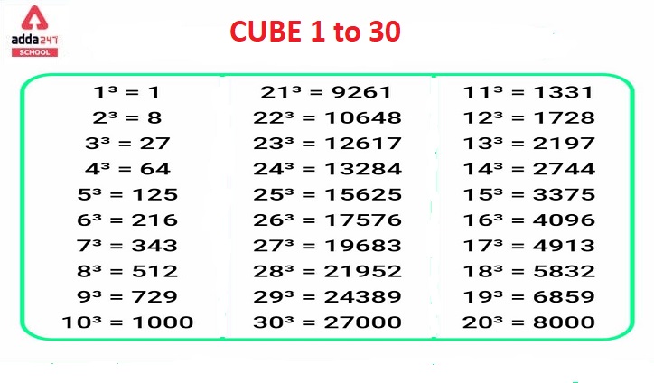 Learning these cubes from 1 to 30 is really beneficial to students. Cube 1 to 30 is given in this table. read all values to solve cube-related problems quickly.Check out the values of Cubes 1 to 30 given in th below table.