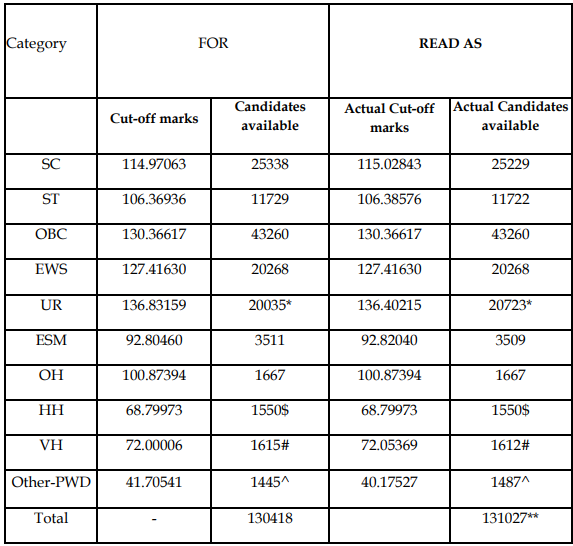 Normalization Method: To ensure fairness, the normalization method is used to adjust scores. This method balances the variation in difficulty levels by using a mathematical formula, so that no candidate is at a disadvantage due to a tougher paper. The normalized score becomes the basis for determining the cut off and selection.