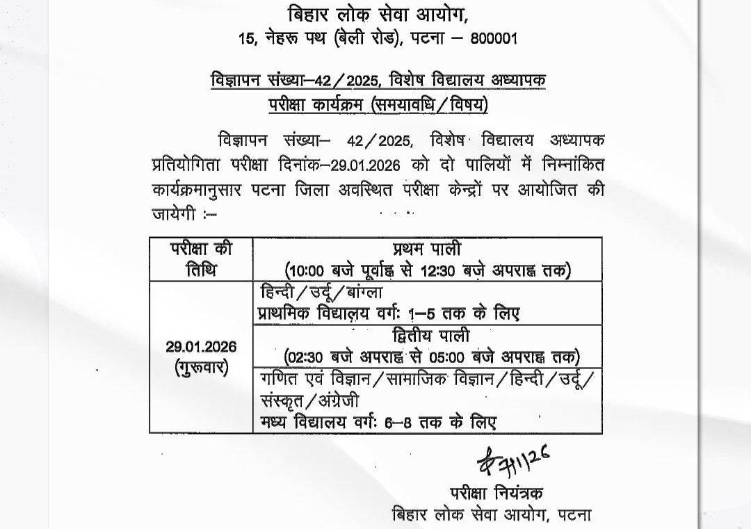 | BPSC Special Teacher Exam Schedule 2026 | ||