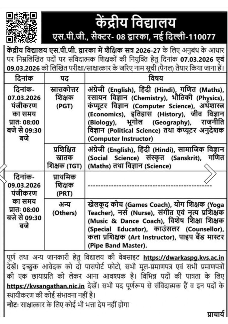We have shared the listing of the KVS Interview scheduled to be conducted for the KVS Contractual Recruitment 2026. Eligible and Interested Candidates can check educational qualifications, age limit, important dates, vacancy details, and selection process through the notification link given below: